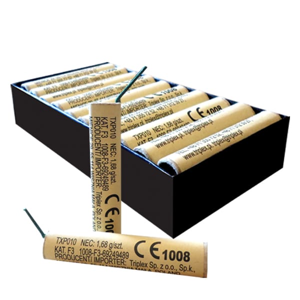Od roku 2020, nowo wyprodukowane w Chinach do użytku amatorskiego, mogą zawierać maksymalnie 0,35g mieszanki pirotechnicznej (NEC) w pojedynczym produkcie. Zachęcamy do zwiększonych zakupów na "zapas". Po wyczerpaniu stanów magazynowych produkty w obecnych wersjach wagowych i cenowych nie będą już dostępne.