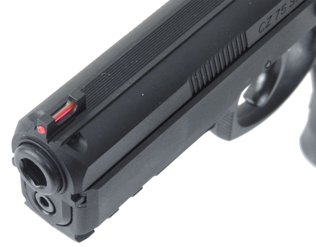 CZ 75 SP-01 Shadow wyposażony jest w stałe, mechaniczne przyrządy celownicze, w tym światłowodową muszkę. Zastosowanie światłowodowej muszki ułatwia celowanie w warunkach ograniczonego oświetlenia.