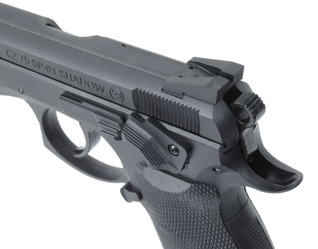 W CZ Shadow SP-01 zastosowano spust w systemie DAO — przeładowanie i napięcie mechanizmu odbywa się, poprzez każdorazowe ściągniecie spustu. W wiatrówce zastosowano nastawną blokadę spustu, której zadaniem jest ochrona użytkownika przed niekontrolowanym wystrzałem. Jej dźwignia umieszczona została z lewej strony nad chwytem. Powierzchnie chwytne zabezpieczono przed ślizganiem się w dłoniach (także w rękawicach) nadając im głębokie teksturowanie.