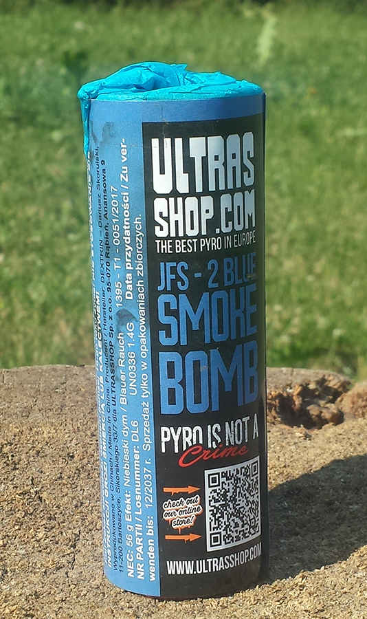 Świeca dymna JFS-2 doskonale nadaje się do średniego zadymienia, sygnalizacji dymnej oraz zastosowań w plenerze. Odpalana za pośrednictwem lontu. Wytwarza przez ok. 60s nietoksyczny, bardzo intensywny niebieski dym. Wyrób przeznaczony jest do stosowania wyłącznie na otwartej przestrzeni (w pomieszczeniach może dojść do pobrudzenia ścian barwnikiem).