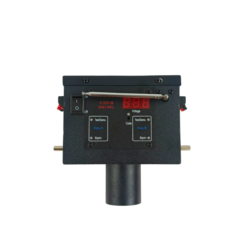 Wiatrak posiada cyfrowy wyświetlacz napięcia oraz dwa przyciski testowe do lokalnego uruchamiania (Key A / Key B). Z boku znajdują się zaciski umożliwiające szeregowe podłączenie fontann iskier.